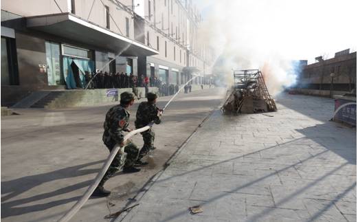 根據(jù)演練方案,上午9:30,在家美家居南廣場模擬三處火災現(xiàn)場,巡查人員發(fā)現(xiàn)火情,立刻報告商場管理人員,工作人員和義務消防隊及時趕到現(xiàn)場,分三個小組用滅火器和消防水帶有效控制火情,并成功滅火。